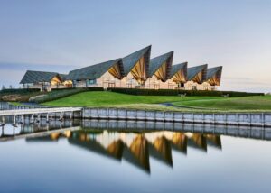 Greatnothern is an investment which chosen to be by Odense island in Denmark, by kertminde, the project is remarkable for its northern design architecture, wooden roofs and stone walls combined with large pieces of laminated glass, which some of them happens to be the largest in Europe, produced by Sedak Germany, the project is surrounded by greenery and golf courses, and it consist of several activities, Hotel, restaurant, Spa Golf Course, also it can host meetings and events.